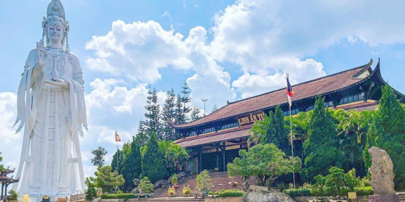 - Đoàn tiếp tục viếng Linh Ẩn Tự là một trong những ngôi chùa nổi tiếng với cảnh quan trầm lắng và pho tượng Phật Quan Âm đẹp nhất Lâm Đồng. Từ trên cao ngắm nhìn cảnh quan Thác Voi hùng vĩ, thơ mộng.