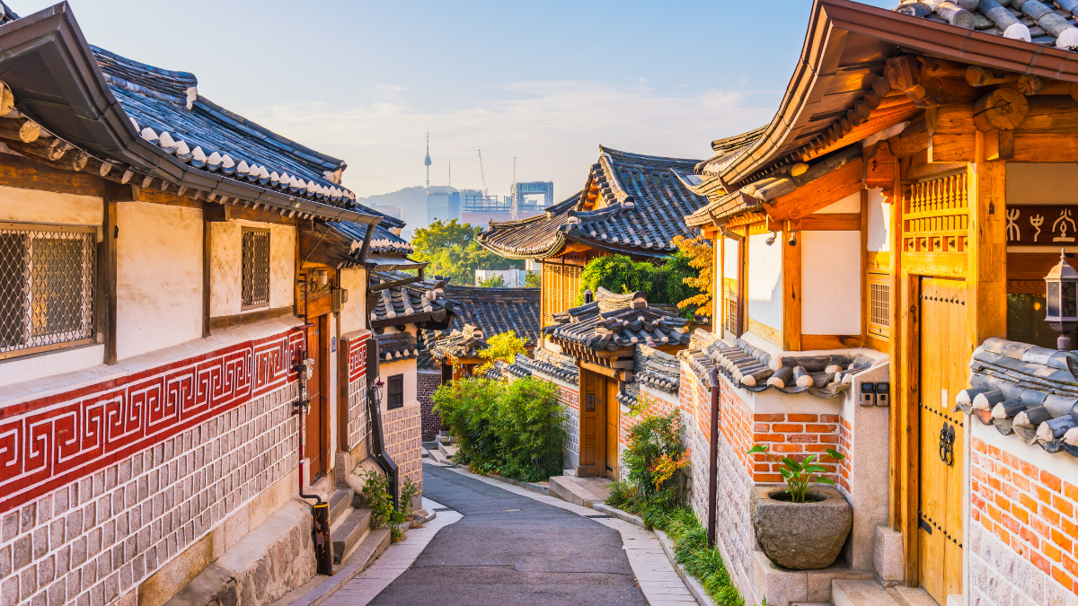 - Làng cổ Hanok Bukchon (Hoặc Namsan) – Bao quanh bởi cung điện Gyeongbokgung, cung điện Changdeokgung và đền thờ thần Jongmyo, làng hanok Bukchon như cách ly hẳn với thị thành náo nhiệt. Cùng với hàng trăm ngôi nhà truyền thống bằng đất sét và đá đơn sơ, Bukchon là hiện thân của một Seoul thời Joseon thu nhỏ ngày nay.